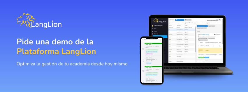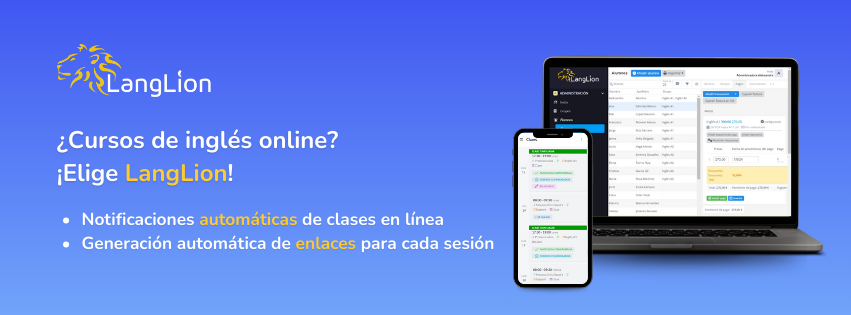 LangLion es un sistema de gestión para escuelas de idiomas que incluye un módulo de enseñanza online. Su objetivo: que todo el proceso sea sencillo y claro para profesores, alumnos y familias.