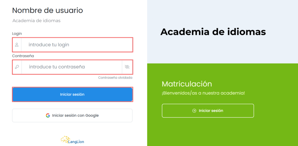 - Desde el navegador web, entrando en la dirección: www.[tuacademia].langlion.com