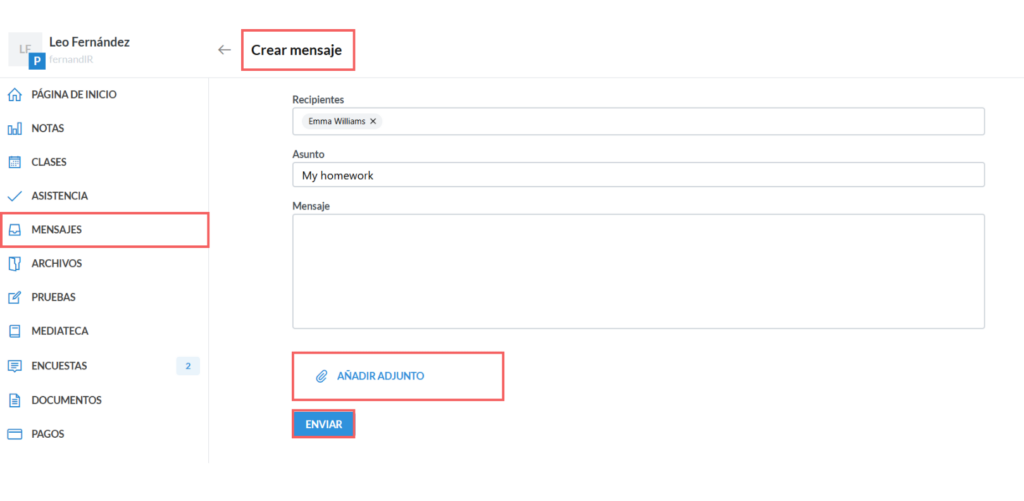 El Panel del alumno te permite enviar y recibir mensajes dentro de la Plataforma LangLion. Podrás mantenerte en contacto de forma constante con la administración de la escuela, tu profesor o tus compañeros de grupo.